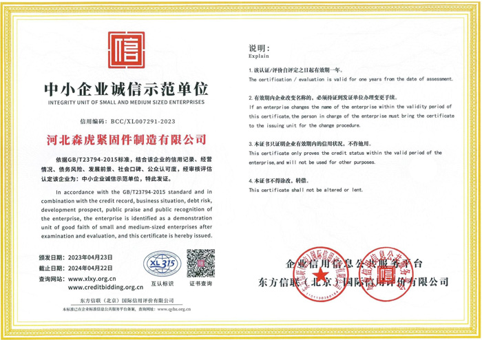 歡迎新老客戶來電垂詢,來廠參觀考察,洽談合作河北森虎緊固件制造有限公司